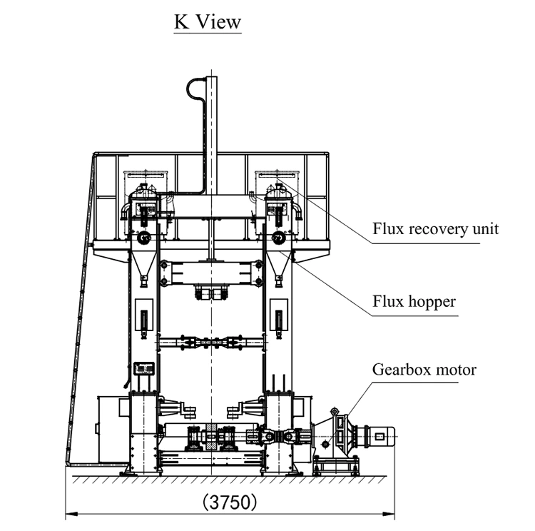 標準のZHJ3-IN 1 Hビーム溶接ラインは、1つの入力ローラーテーブル、メイン溶接および矯正ステーション、出力テーブルで構成されています。メインの溶接およびストレートリングステーションは、フラックス回復ユニットを設置し、フランジとウェブ用のトーチとクランプデバイスを溶接するヘッドを設置しました。