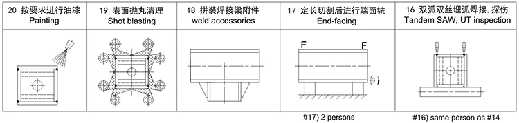 以下は、プレートからHビームへの生産の生産フローチャートと最終検査です。